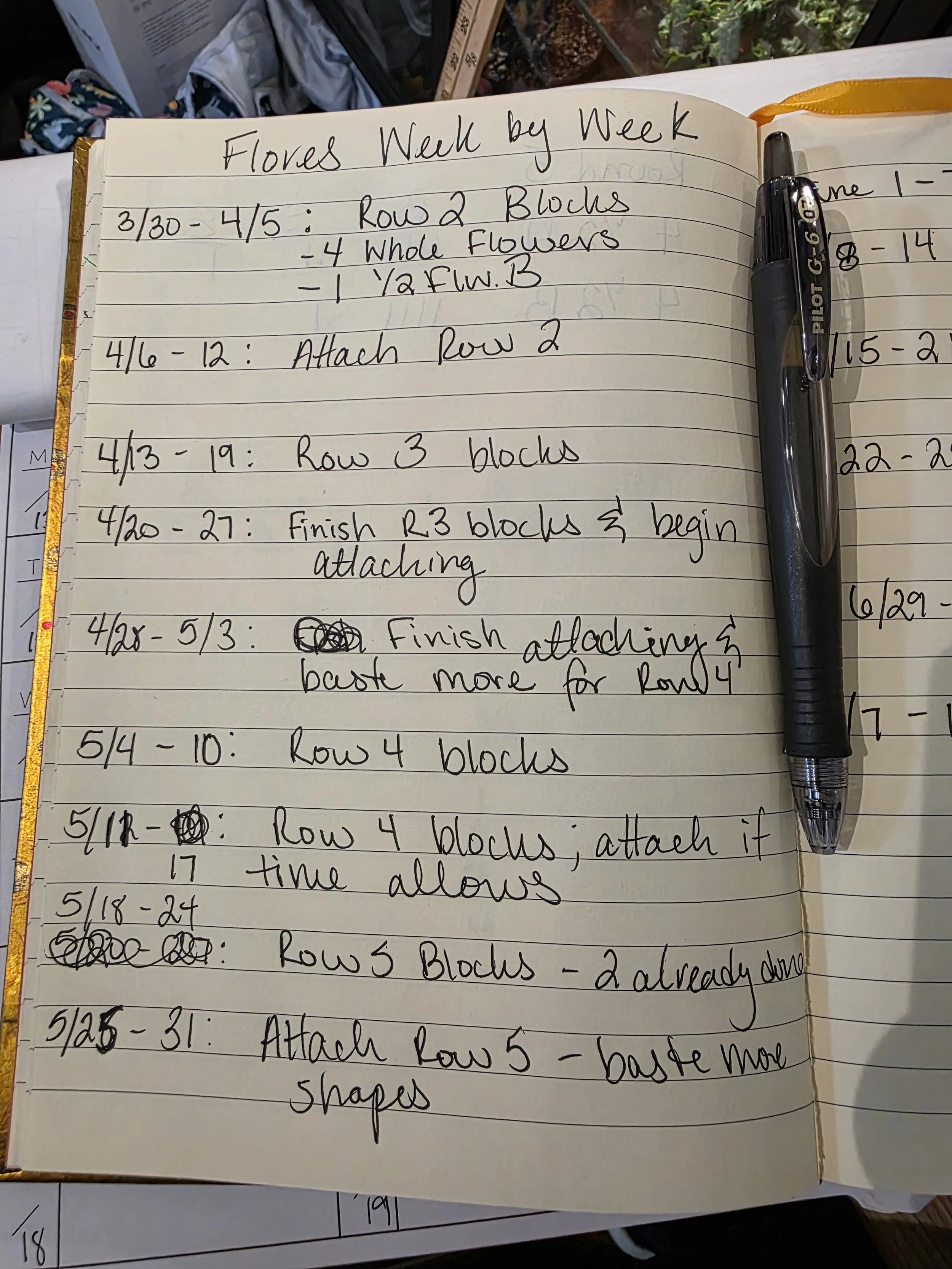 You can add as little or as much info in your weekly planning as you would like. For me I have a tracker for the different blocks and rows that I made for this pattern, so I will use that in tandem to the weekly breakdown.